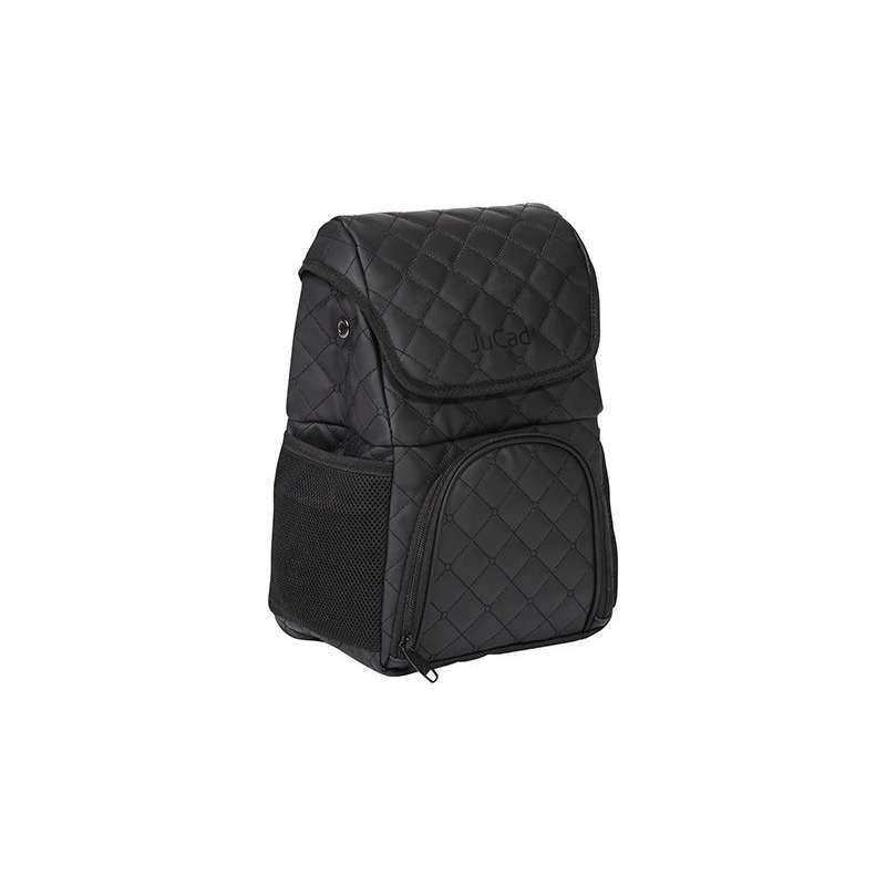 Akcesoria golfowe i cenne przedmioty można przechowywać w dwóch oddzielnych przegrodach w tej elegancko pikowanej torbie na zatrzask, pasującej do wszystkich wózków golfowych JuCad. W górnej części znajduje się dodatkowa przegroda zapinana na zamek błyskawiczny, a w dolnej dodatkowa przegroda chłodząca na zimne napoje. Łatwe mocowanie do wózka JuCad za pomocą zapięcia na rzep.