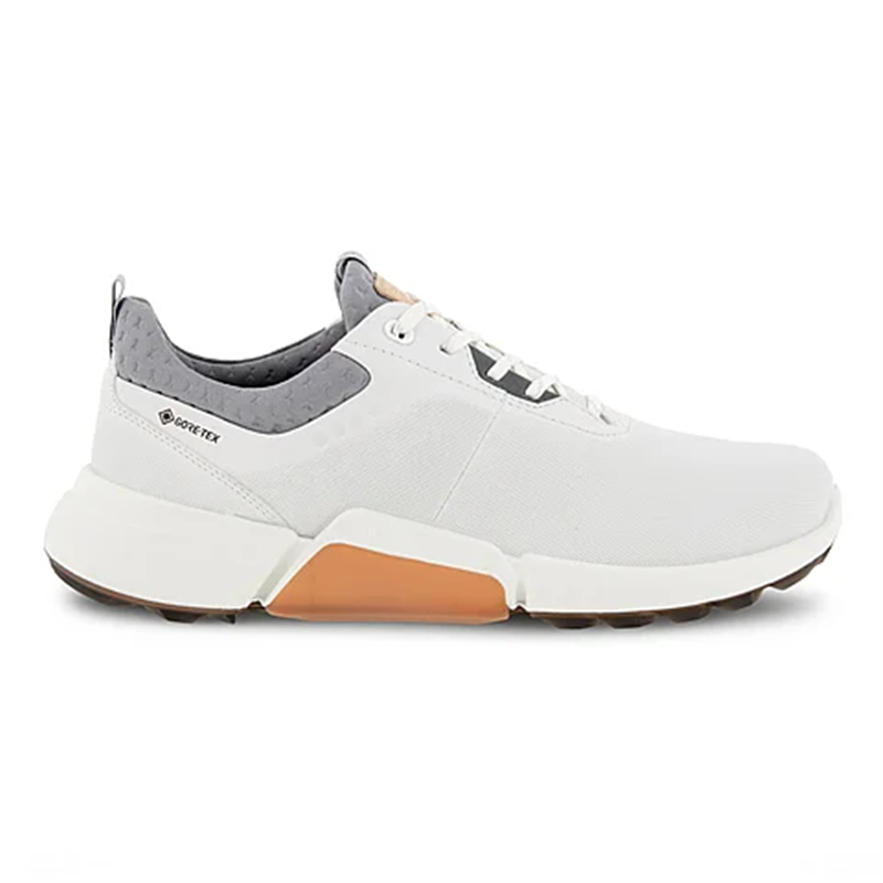 Zachęceni popularnością naszej kolekcji BIOM HYBRID 3 stworzyliśmy nowy model wyposażony w udoskonaloną, najnowocześniejszą podeszwę zewnętrzną. Buty ECCO W BIOM H4 są wykonane z wytrzymałej skóry ECCO. Mają ciekawe, mikroperforowane tłoczenia i zastosowano w nich wodoodporną technologię GORE-TEX, która dba o suchość stóp nawet w mokrych warunkach. Nowa podeszwa zewnętrzna MTN GRIP wykorzystuje naszą flagową technologię FLUIDFORM™. Z kolei przyciągająca uwagę podeszwa środkowa PU ze wstawkami z TPU po obu stronach pewnie opina stopę i zapewnia stabilność oraz wsparcie podczas gry. Nieprzeciętny i minimalistyczny design sprawi, że będziesz świetnie się prezentować zarówno na polu golfowym, jak i poza nim.