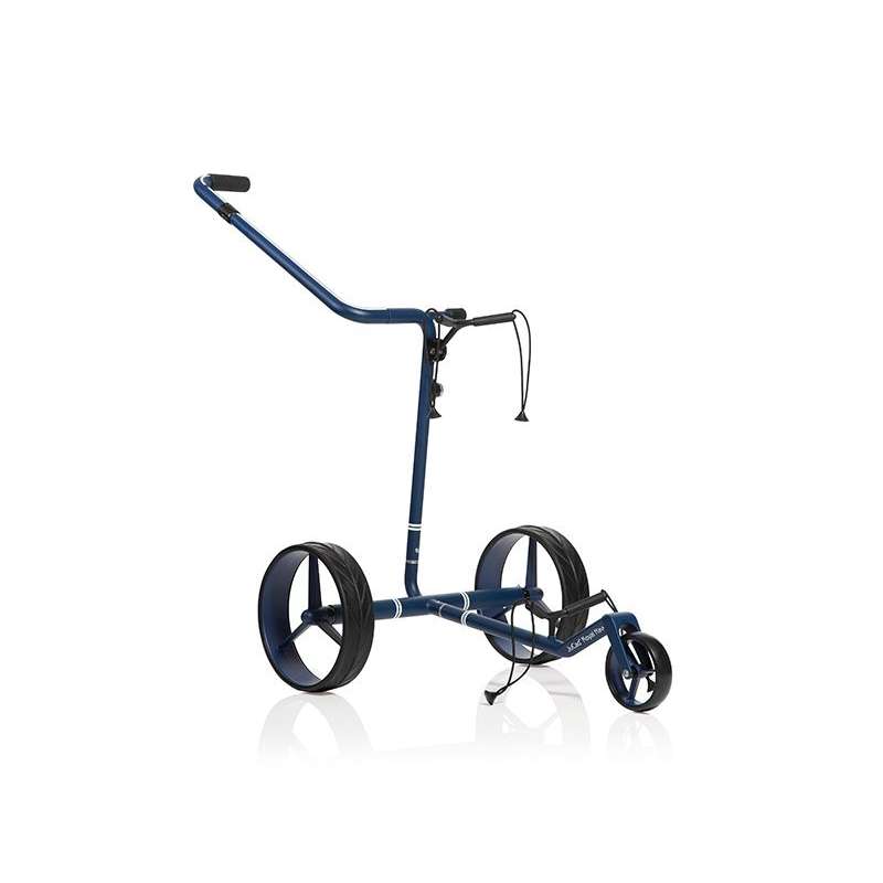 Carbon Travel Royal Navy zachwyca głębokim, wyrafinowanym matowo-niebieskim kolorem z białymi paskami – elegancki i mocny, zapewniający stylowe osiągi. Jednak ten wyjątkowy model wyróżnia się nie tylko wizualnie. Pod względem technologicznym Royal Navy obiecuje również czystą przyjemność z jazdy dzięki lekkiej wadze 5,8 kg i dwóm mocnym silnikom. Dzięki niezwykle stabilnej, w pełni karbonowej ramie, zaprojektowanej specjalnie z myślą o wysokich wymaganiach pola golfowego, ten caddy oferuje absolutną stabilność pomimo niskiej wagi. Inteligentny pakiet technologiczny zapewnia dodatkowy komfort i obejmuje ciche silniki bezszczotkowe z elektronicznym hamulcem postojowym po obu stronach, zapewniającym bezpieczne trzymanie się nawet na najbardziej stromym terenie, a także magnetyczne wtyczki, zintegrowany wskaźnik poziomu naładowania oraz NOWOŚĆ – Slope Balance Control (SBC®) dla optymalnego poziomowania nachylenia, aby zawsze utrzymać się na właściwej drodze. JuCad Royal Navy 3.0 ma miniaturowe wymiary po spakowaniu wynoszące zaledwie 65x35x15 cm i jest idealnym towarzyszem podróży. Można go spakować do pokrowca podróżnego wraz z torbą golfową i zabrać ze sobą tylko jedną sztukę bagażu. Bezstopniowa przepustnica, automatyczna funkcja jazdy do przodu i do tyłu oraz cichy, stały napęd na dwa koła sprawiają, że każda runda golfa to czysta przyjemność. JuCad Carbon Travel Royal Navy 3.0 jest opcjonalnie dostępny z pilotem zdalnego sterowania JuCad, co pozwala zaoszczędzić sporo czasu i w pełni skupić się na grze.