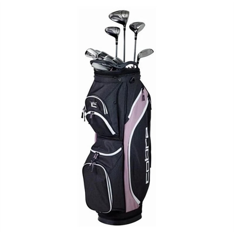 Damski kompletny zestaw Cobra FLY-XL zawiera pełną torbę lekkich i wybaczających kijów, które zapewniają łatwy start i dystans dla początkujących lub aspirujących golfistów. 13-częściowy zestaw zawiera driver, fairway woods, hybrydę, putter i torbę na wózek.